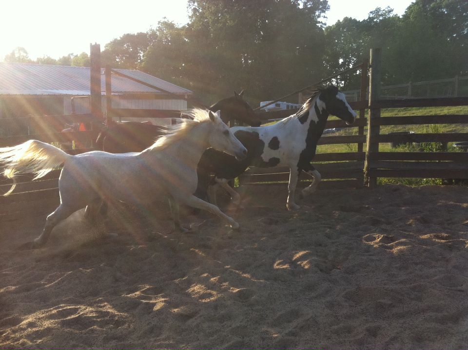 Clipper shows Perry and Sylvan how this round penning thing is done–note how much extension Clipper has!